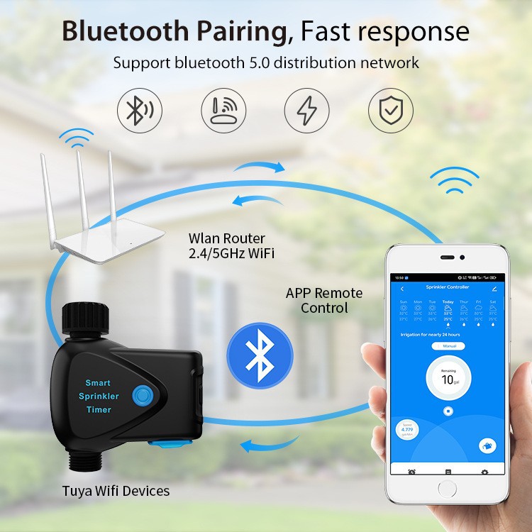Powered by Tuya Smart and compatible with Smart Life, Alexa, and Google Home, this irrigation timer allows you to control and monitor your watering schedule from anywhere using your smartphone. Perfect for lawns, vegetable gardens, flower beds, or greenhouses, it’s designed to make outdoor watering effortless and efficient.