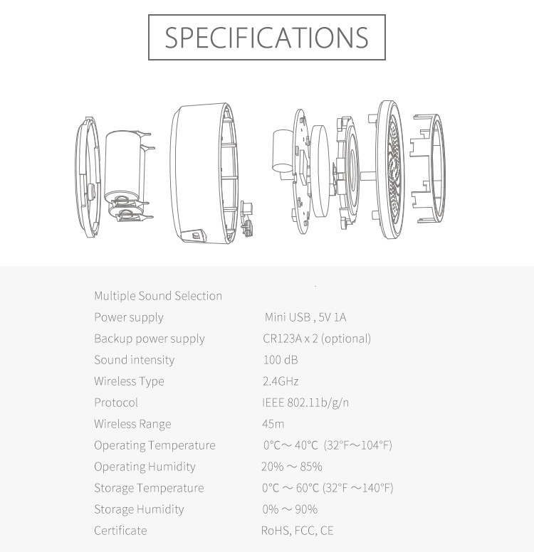 Strong audio-visual alerts to deter intruders or warn of emergencies—ideal for homes, offices, and rental spaces. - Built-in Temperature & Humidity Sensor